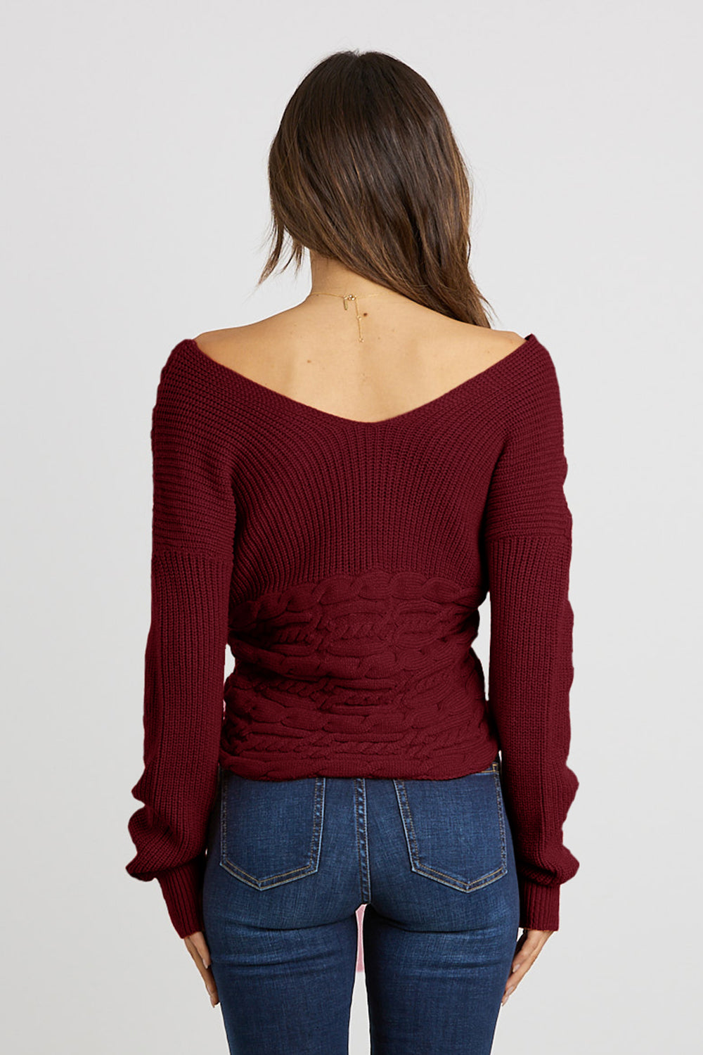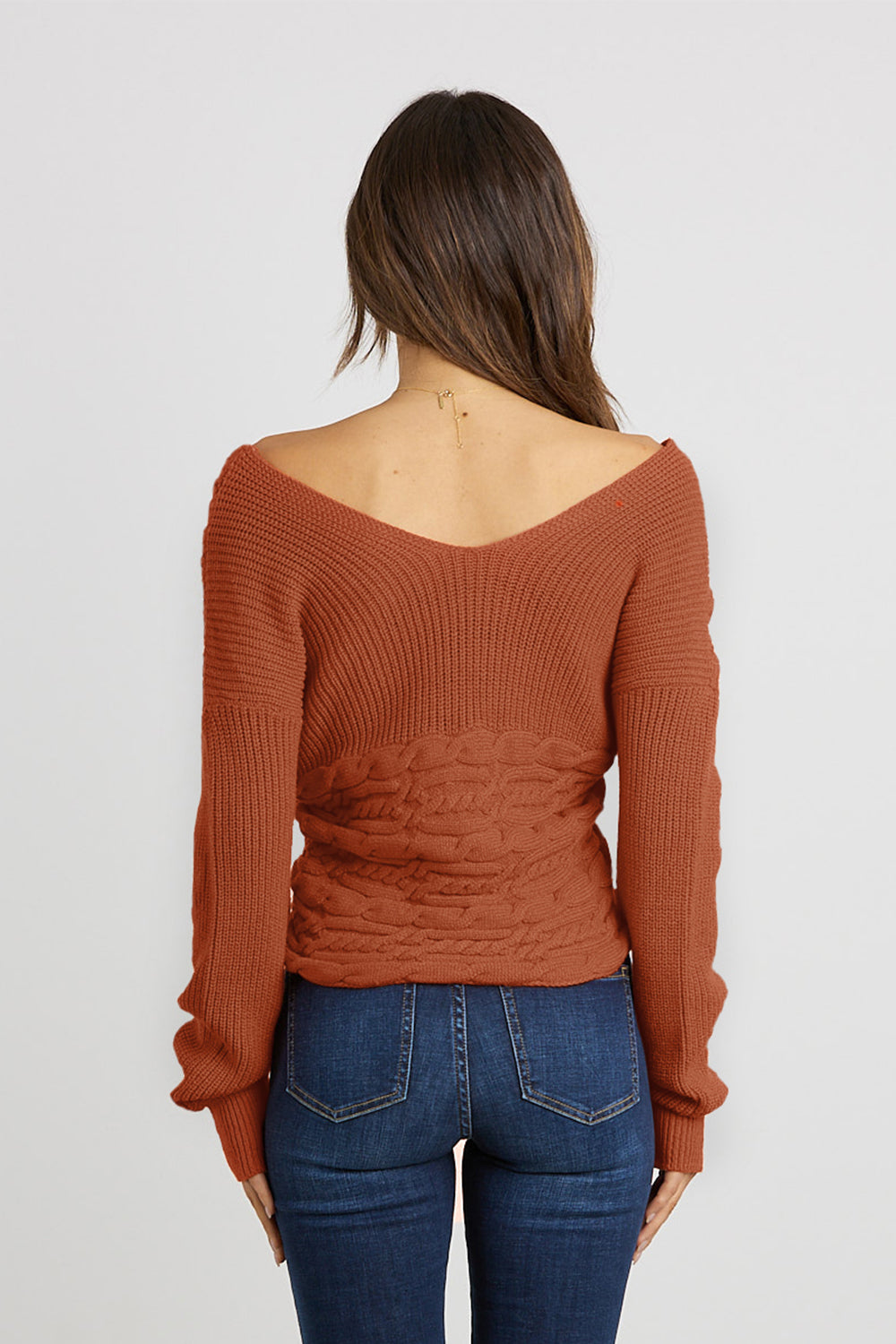 Wrap Front Off Shoulder Asymmetric Pullover Sweater